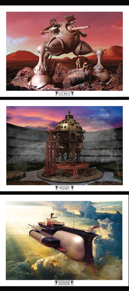 The Gladstone Tank, Celestial Sphere, and Leviathan Airship, in a set of three A3 art prints, at a special price, with free postage in the United Kingdom!
